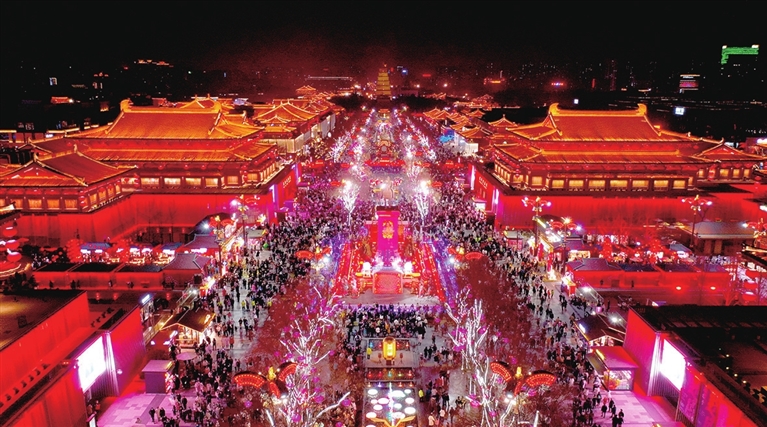 大雁塔下,大唐不夜城景区,2公里长街人头攒动。移步换景,这条仿唐步行街,散落着体验唐代市井生活的长安十二时辰主题街区、感受唐诗魅力的星光步道、领略艺术之美的音乐厅和美术馆。