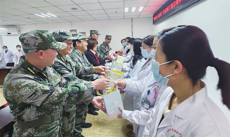当日,并南西二社区“巾帼班”民兵邀请社区卫生服务站及附近医院里的部分护士一起过节,送上节日祝福与鲜花、慰问品,向“白衣天使”致以祝福、问候以及衷心感谢。在场的护士们也纷纷表示,必将踔厉奋发、笃行不怠,继续为辖区居民提供更加优质的护理服务,为居民的健康保驾护航。