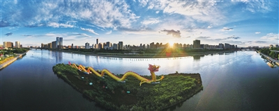 夕阳下的汾河景区,碧空如洗,霞光焕彩。贾 鹏 摄