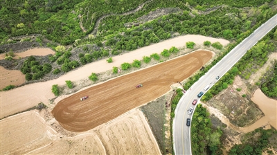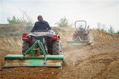 连日来,该区窑庄村的田地里机声隆隆,犁地机来回穿梭作业,新翻泥土的清新气息扑面而来。另一边,农机手正忙着在播种机上装入地膜、滴灌带,倒入玉米种子,有序覆土压膜。随着覆膜机缓缓驶过,田间整齐的线条构成了一幅美丽的春耕画卷。