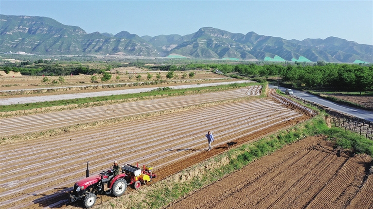 5月17日,阳曲县泥屯镇村民正抢抓农时播种玉米,为实现今年丰产丰收开好头、起好步。韩双喜 摄
