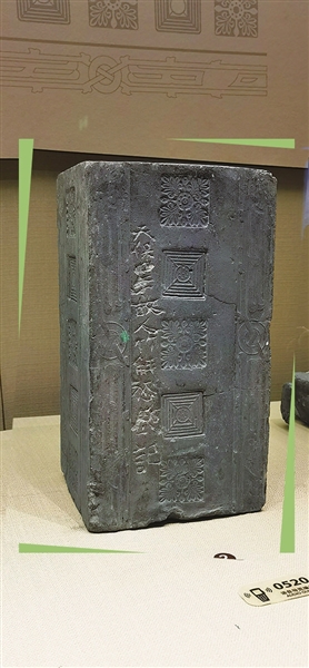 在太原市博物馆,陈列着一块2000年出土于太原晋源开化村的空心砖。这块空心砖,制于北齐天保四年(553),长32.8厘米,宽18厘米,高16.05厘米,长方形,外形完整。砖为青灰色,四面中间纹饰相同,均为三个方形忍冬纹和两个回形纹间隔排列,纹饰中间呈圆形花蕊状。砖面两边各有一幅由简易变体夔龙纹组成的“二龙穿璧”图,中间有一玉璧,形成“十字穿环”纹。尤为珍贵的是,这块砖正面偏左的位置手刻有“天保四年故人竹解愁铭记”的字样。