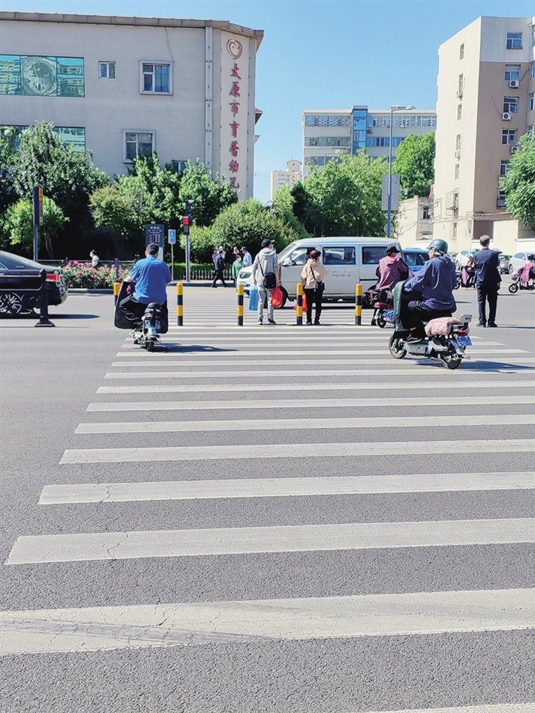 这是5月22日9时40分左右在府西街旱西南二条十字路口拍到的。几名市民看到红灯还执意横穿马路。司 勇 摄