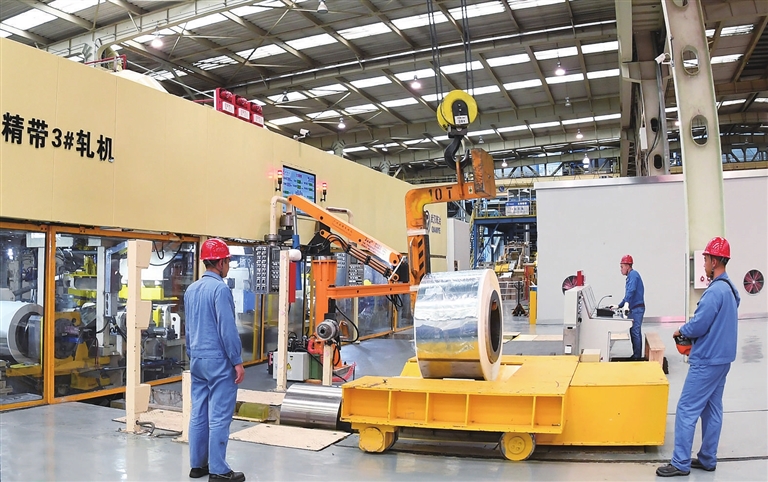 5月25日,中国宝武太钢集团不锈钢精密带钢有限公司职工在新生产线生产“手撕钢”。目前,该公司的不锈钢精密箔材已形成3大类20多个系列品种,填补了该领域多项国内空白。王旭宏 摄