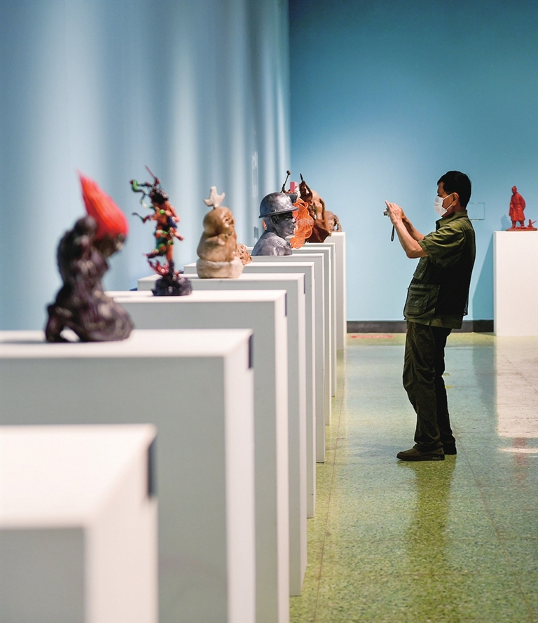 展览分现代雕塑、传统彩塑、艺术衍生品和新人新作四个单元,共展出优秀雕塑作品200余件。