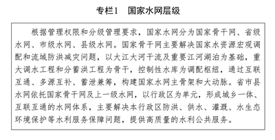 织密国家水网之“目”。结合国家、省区市水安全保障需求,加强国家重大水资源配置工程与区域重要水资源配置工程的互联互通,推进主要支流和中小河流综合治理、区域河湖水系连通和引调排水工程建设,形成城乡一体、互联互通的省市县水网体系,改善河湖生态环境质量,提升水资源配置保障能力和水旱灾害防御能力。