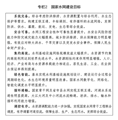 到2025年,建设一批国家水网骨干工程,国家骨干网建设加快推进,省市县水网有序实施,着力补齐水资源配置、城乡供水、防洪排涝、水生态保护、水网智能化等短板和薄弱环节,水旱灾害防御能力、水资源节约集约利用能力、水资源优化配置能力、大江大河大湖生态保护治理能力进一步提高,水网工程智能化水平得到提升,国家水安全保障能力明显增强。