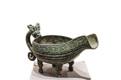 直腹,上腹饰一周饕餮纹,共8组;腹壁饰乳钉纹。鼎足为空心柱体,上粗下细,中部偏上饰一周饕餮纹,共两组;足底平直,内含泥心。耳、口、腹、足分开制作,为多范分体铸造。荀国匜(西周)