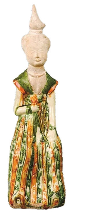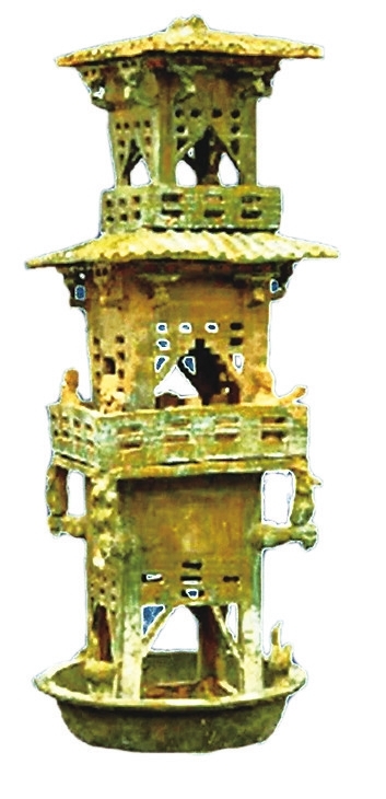 山西省平陆县圣人涧村出土。明器,三层,层间设腰檐,通体施绿釉。