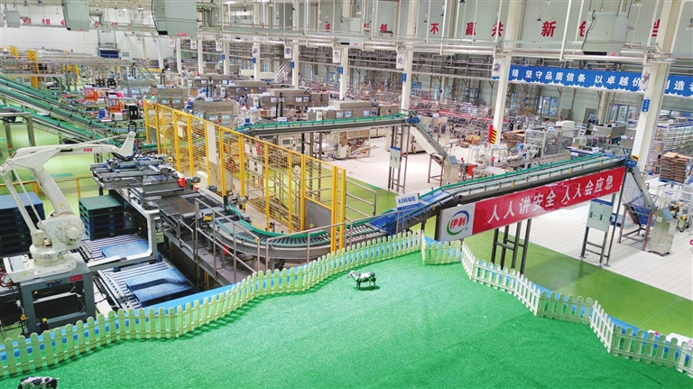 晋中伊利就是数字化转型的典范之一。作为行业龙头,伊利敏锐感知行业环境变化和消费者生活方式变化,紧跟数字化社会国家政策的持续推进和消费者数字化生活方式的不断加深,2020年全速启动数字化战略。在晋中伊利的生产车间,自动化的生产线,配合智能化装箱机器人、码垛机器人、缠绕机器人,极大地提高了生产效率。