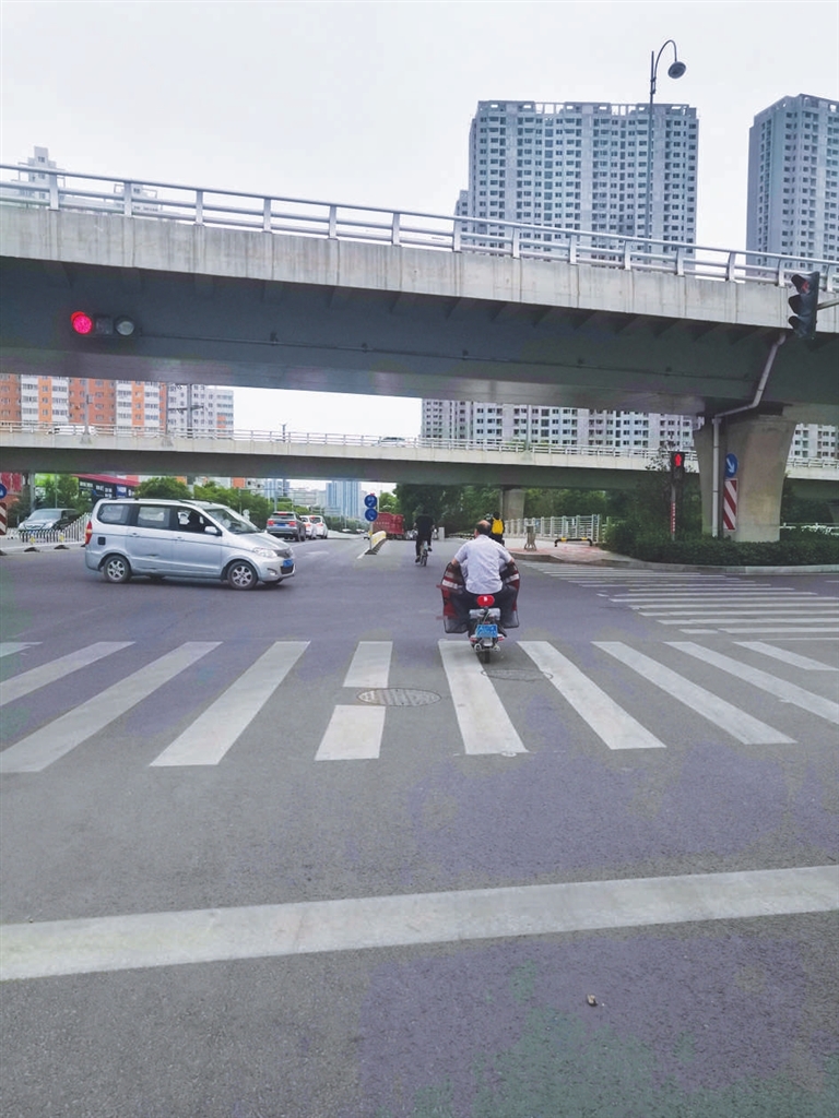 红灯停,绿灯行,是经过信号灯路口的基本常识和要求,但依然有人心存侥幸。5月30日,一市民骑电动自行车行驶至晋祠路与九院沙河红绿灯路口时,不管不顾,直接闯红灯通行,导致一辆绿灯放行的小车被迫紧急制动。非机动车闯红灯,不仅给自身带来安全隐患,也影响他人的正常通行,大家应自觉遵守交通法规,安全文明出行。刘志刚 摄