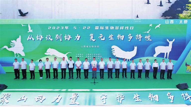 太原师范学院的大学生志愿者代表姚书宇向全体市民发出倡议:让我们携起手来,从我做起,从点滴做起,汇聚山西力量,守护生物多样性,共建人与自然和谐共生的美丽家园。