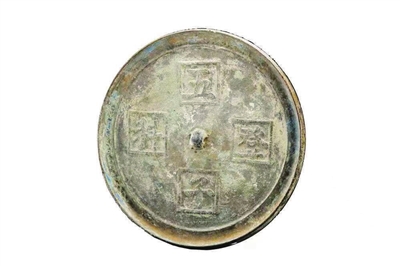 “五子登科”本为中国民间谚语,最初来源于民间故事。话说五代后周时期,燕山府有个叫窦禹钧的人,他的五个儿子都品学兼优,先后登科及第,故称“五子登科”。宁波博物馆藏明代“五子登科”镜便寄托了人们期望子弟都能像窦禹钧五子一样获得科考成功的美好愿望。这方“五子登科”镜,圆形,圆钮。其外环饰有一周凸弦纹,窄缘。中心的钮上下左右各有一凸起的方框,框内各铸一楷书字铭,合读为“五子登科”。