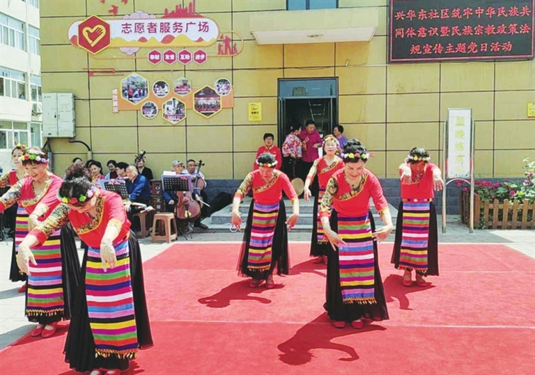 此外,汇丰街道实施“网格+民族宗教政策”宣传,探索“四联三创五进”机制。四联,即将驻地单位、居民小区、所在网格和各族群众紧密联系起来,搭建宣传平台;三创,即通过民族团结进步示范创建,带动模范小区、模范家庭、模范个人创建;五进,即推动民族宗教政策宣传学习进机关、进社区、进学校、进企业、进家庭,扩大影响力。(王 勇、杨 莉 文/摄)