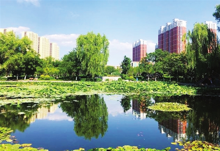 玉门河公园地处万柏林区,西临前进路,东临和平北路,隐藏于闹市的清幽处。“松柏有本性,林园无俗情。”园不大,却精致生动。