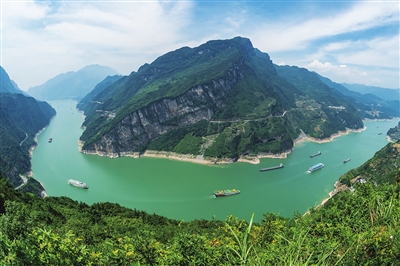 6月10日,船舶行驶在三峡大坝上游湖北省宜昌市秭归县水域。三峡水库水位下降后的消落带清晰可见。据水利部长江水利委员会消息,截至6月10日,长江流域纳入联合调度的控制性水库共腾出正常蓄水位以下约870亿立方米库容,较设计防洪库容多165亿立方米,总体完成年度防汛消落任务。新华社发