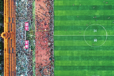 6月10日拍摄的贵州“村超”足球比赛现场(无人机照片)。贵州“村超”,由群众主创、参赛者以村民为主,自5月13日开赛以来,因其接地气的办赛风格、丰富多彩的民族文化和热烈的现场氛围,迅速爆火网络。新华社记者 杨文斌 摄