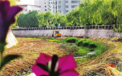 6月11日,大型机械在清理南沙河新建路段河道内的杂草,确保安全度汛。牛利敏 摄