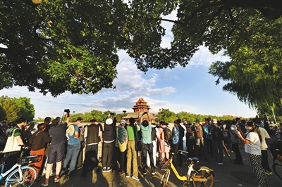 六月十一日,人们在拍摄北京故宫角楼。当日下午,北京迎来一场降雨。雨后的故宫角楼吸引众多摄影爱好者和游人驻足拍照。