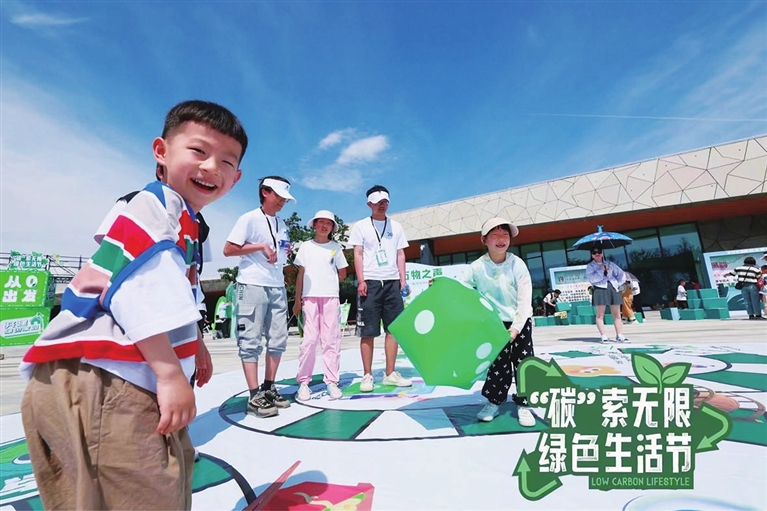 活动当天,来自各地的游客闻“碳”而动,“赴宴”的嘉宾们早早赶到现场:会发电的自行车,让人总想蹬两圈;垃圾分类投篮,总能激起人的胜负欲;真人大富翁,总是能让人梦回童年。