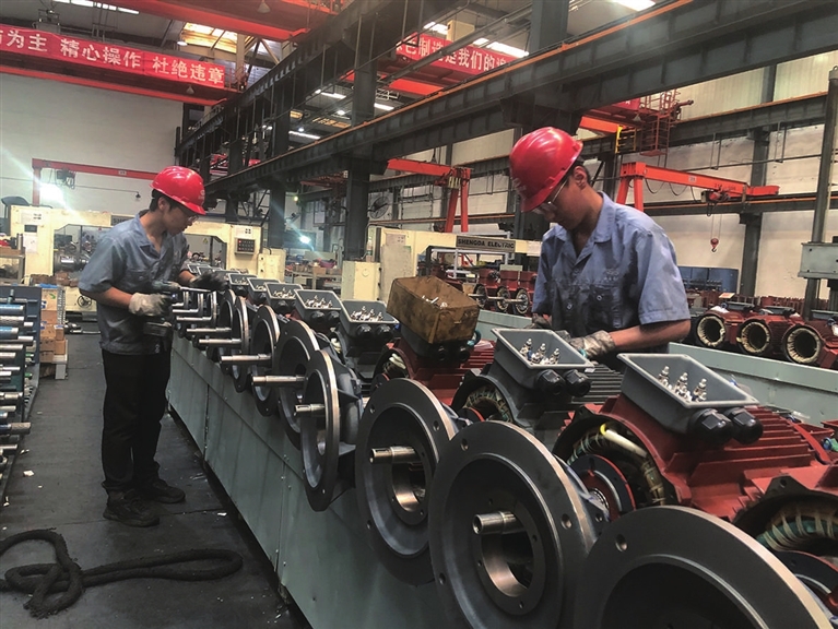 机加工车间里,工人操控机床,进行车、铣、钻加工,完成机壳端盖等各类零部件的生产;冲剪车间里,各种吨位的高速精密压力机,按照设置瞬间“剪裁”出电机的定子铁心和转子片,轰鸣声阵阵;电工车间里,几个工人一组,待自动嵌线机完成排线嵌线后,他们做好绑扎,收拾规整,方便用户使用。