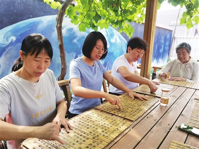 社区特别邀请了专业的点读宣讲师带领大家一起阅读。在老师的带领下,居民用十个手指在竹简上轮流点读,这是此次阅读与以往最大的不同之处。据介绍,这样的方式可以让读者在朗读的同时更好地调动大脑,益于身心健康。
