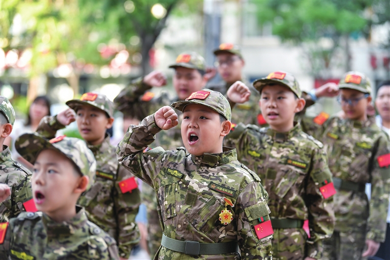 号令发出,“小兵”们精神抖擞。“服从命令,听从指挥,迎接挑战,英勇顽强……”目光坚定,誓言铿锵。