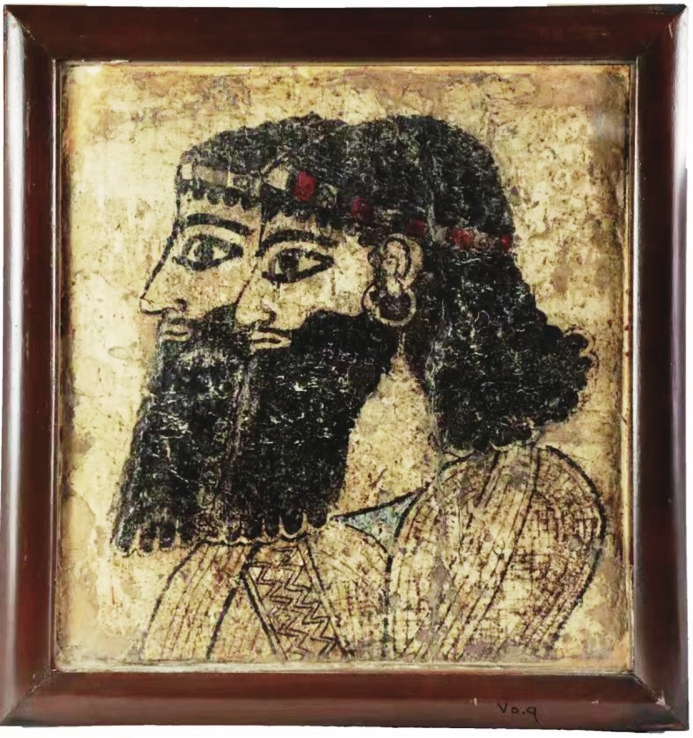 左图这幅精美的壁画发现于叙利亚阿勒颇省,现藏于阿勒颇博物馆。画面中的人物浓眉大眼,胡须浓密,头戴红色宝石的发冠,长发及肩,表现的是战争胜利后的场景。这是少数保存至今的亚述壁画之一,无论从艺术还是文化角度来看,都具有重要的价值。