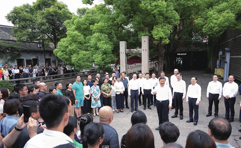 7月5日至7日,习近平在江苏省委书记信长星和省长许昆林陪同下,先后来到苏州、南京等地,深入工业园区、企业、历史文化街区、科学实验室等进行调研。