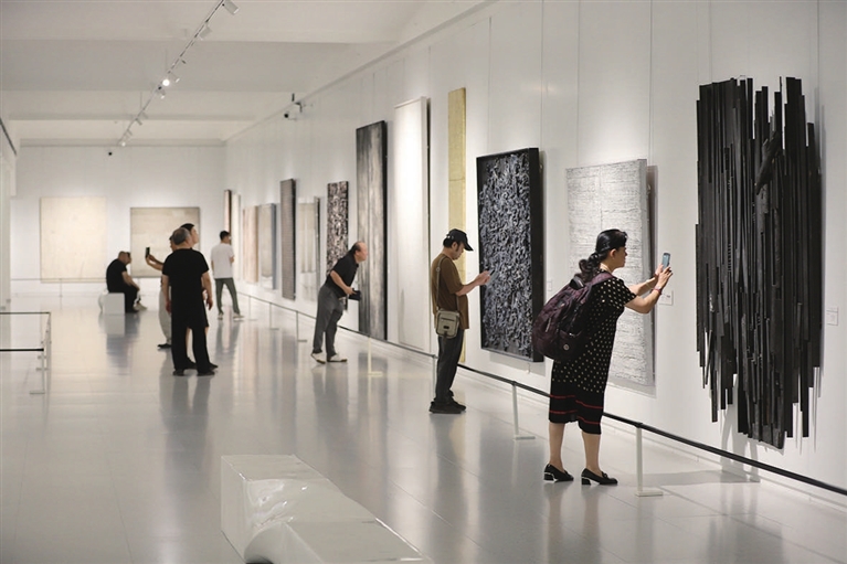 7月10日,综合材料绘画作品展在摩诘美术馆开展。本次展出的绘画作品通过更灵活的表现形式,展现了独特的艺术魅力。张昊宇 摄