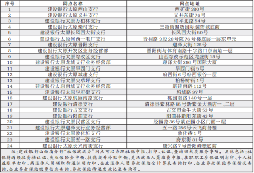 建设银行山西省分行“社保就近办”网点(太原地区)