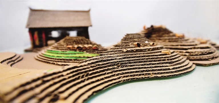 王帅栋将山西地标作为创作基点,把山西厚重朴实的黄土文化,通过瓦楞纸特有的色彩和质地,淋漓尽致地展现出来。