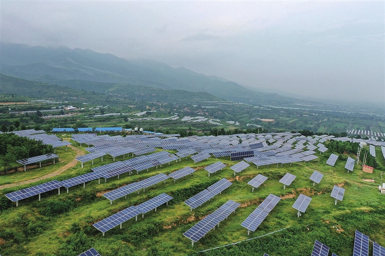 在山西省芮城县学张乡拍摄的光伏电站(无人机照片,7月12日摄)。近年来,山西省芮城县大力推进清洁能源开发利用,推动新能源项目建设,助力绿色低碳发展。新华社记者 詹 彦 摄