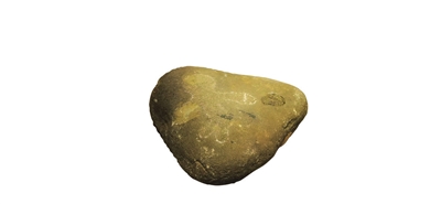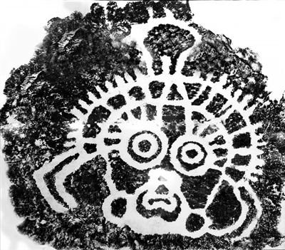 此次展出的贺兰山岩画,实物和拓片相结合,均来自于银川世界岩画馆。一块长24厘米、宽21厘米的石头上,刻绘出一幅《人体》岩画,石上图案线条简单,表现手法古拙,略去细节,只通过四肢来表现动作和体态,显现出自然天成的审美情趣和率真质朴的艺术魅力。而一幅72厘米见方的岩画作品《太阳神》,来自于一幅最为出名的贺兰山岩画。这是一幅拓片作品,拓制于贺兰山贺兰口沟谷东侧距地面20米高的垂直岩壁上。在古代,太阳崇拜是一种普遍的、世界性的现象。这幅岩画中的太阳神形如人面,威武肃穆,双眼重环,炯炯有神,头部密密的线条犹如太阳普照万物,又代表着神灵护佑众生。有学者认为,太阳神头部放射性光芒的数字排列分别为24、12、6,或与中国的二十四节气或太阳历有关。