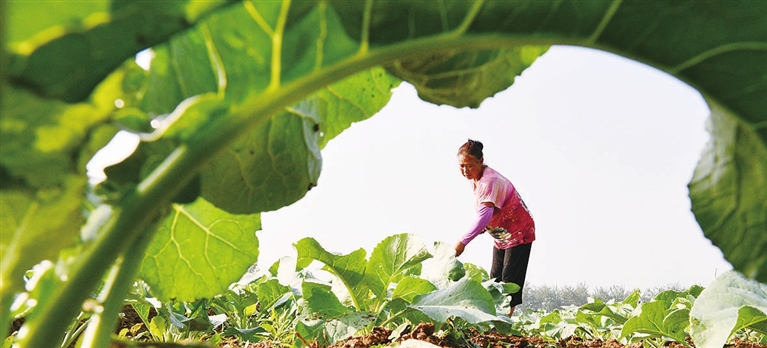 7月23日,在河北省石家庄市栾城区赵家庄村农田里,菜农在管护菜花苗。当日是大暑节气,各地农民抢抓农时,忙碌在田间地头。新华社发 (李明发 摄)