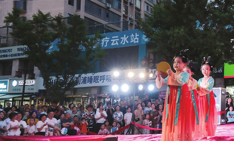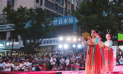 7月23日晚,晋阳街某小区内的一场消夏晚会,为居民送来一份清凉。盛夏的夜晚,我市各种文艺演出、主题活动丰富了市民夜生活,带动了经济发展。王韵菲 摄