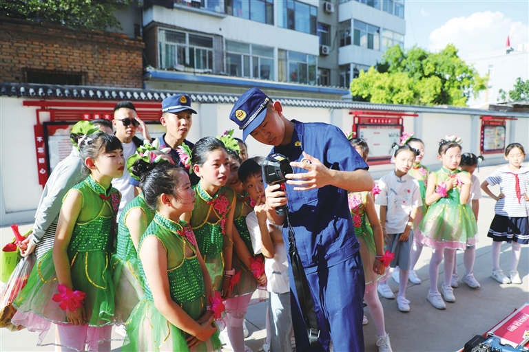 7月26日,迎泽区大南关小学师生走进老军营消防救援站开展暑期实践活动。孩子们为消防员们献上了精彩的演出,并在消防员引导下学习消防相关知识,丰富暑期生活。