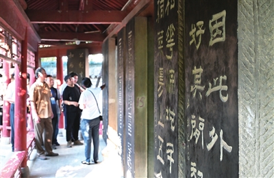 碑林公园,作家们认真地观赏傅山书法,感受傅青主的铮铮风骨。