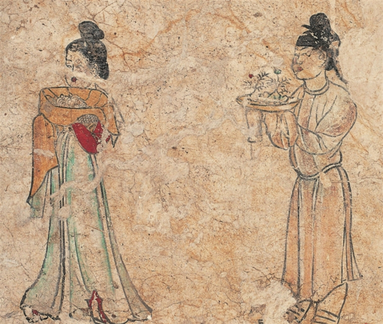 由奶油制成的“酥山”在唐、宋、元时期流行。在唐代章怀太子墓出土的《侍女内侍图》中,一侍女穿长衫,双手捧圆盘,上面盛放着白色冰块状的物品,这就是酥山。