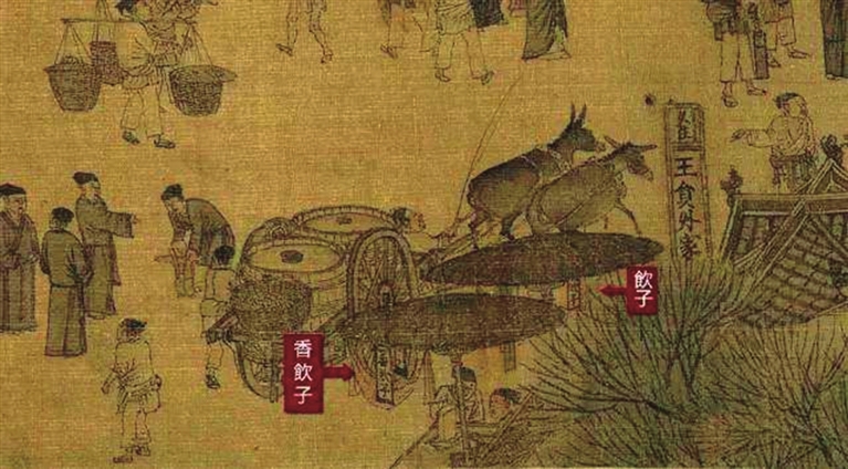 “饮子”是古代常见的一种饮品。在北宋画家张择端的《清明上河图》中,可以寻找到众多茶肆和饮子的身影:一家旅店门前,支着两把遮阳伞,“广告牌”上写有“饮子”“香饮子”字样。