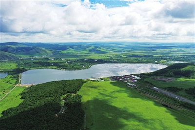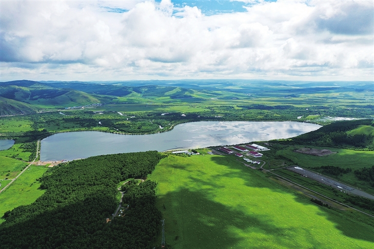 七月二十九日拍摄的牙克石市凤凰山景区风光(无人机照片)。