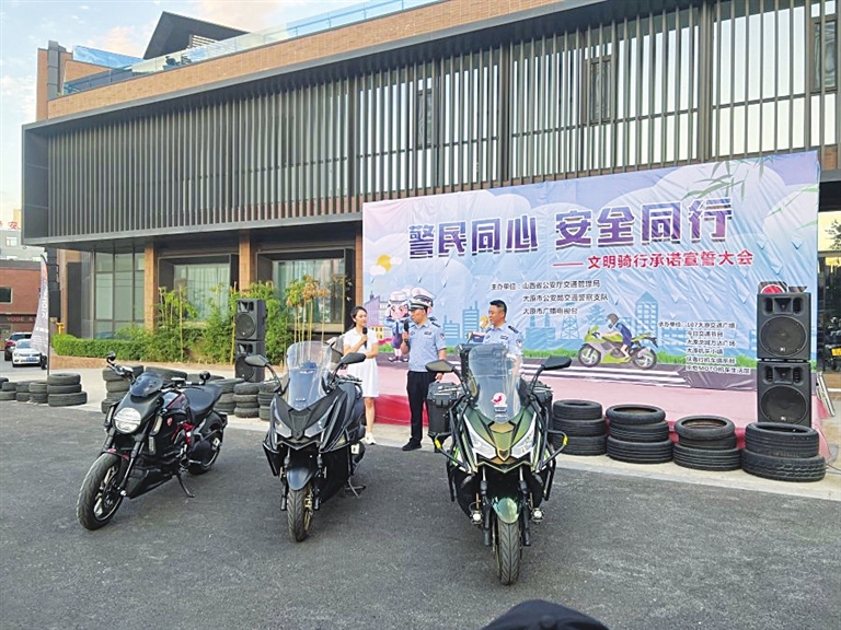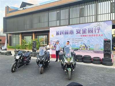 活动最后,摩托车驾驶人代表在交警和众多媒体的见证下大声宣誓,并倡导大家自觉遵守交通法规,坚决抵制危险驾驶行为,文明守法,安全出行,共同创造良好的道路交通环境。