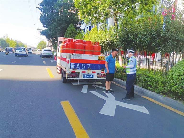 检查中,四中队民警针对危化品运输车辆是否存在超载、超装、驾驶员及押运人员有无资质等问题进行核查登记。同时,要求驾驶员严格按照事前、事中、事后各项标准进行操作,不超载、不超速、不疲劳驾驶,时刻绷紧安全弦,筑牢“红线”意识,做到文明出行。
