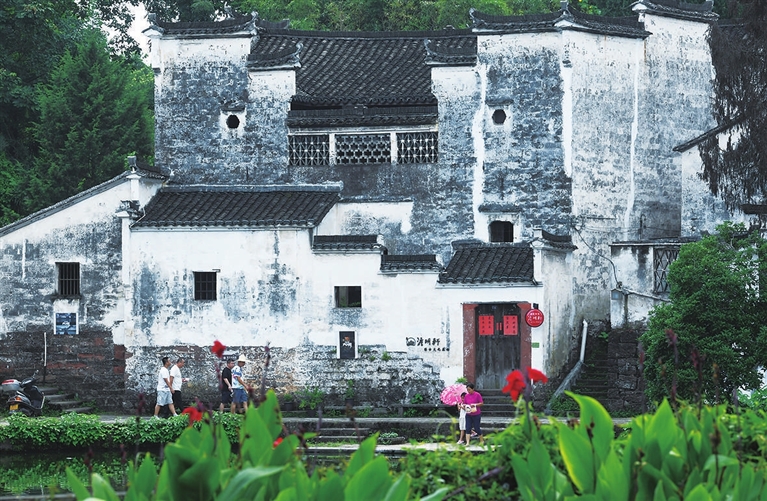 8月1日,游客在诸葛村参观游览。位于浙江省兰溪市的诸葛村是诸葛亮后裔的聚居地,有原住民5000多人、明清古建300多幢。21世纪以来,诸葛村践行“人人都是文保员”的理念,探索古村落保护开发,疏通水系,修葺古民居,流转部分老房进行商业开发,同时挖掘古村的耕读文化、中医药文化,汇聚各方力量护持古村落遗产。目前,诸葛村年接待游客50多万人次,村集体收入逐年提高,村民成为古村落保护最大的参与者和受益者。新华社记者 翁忻旸 摄