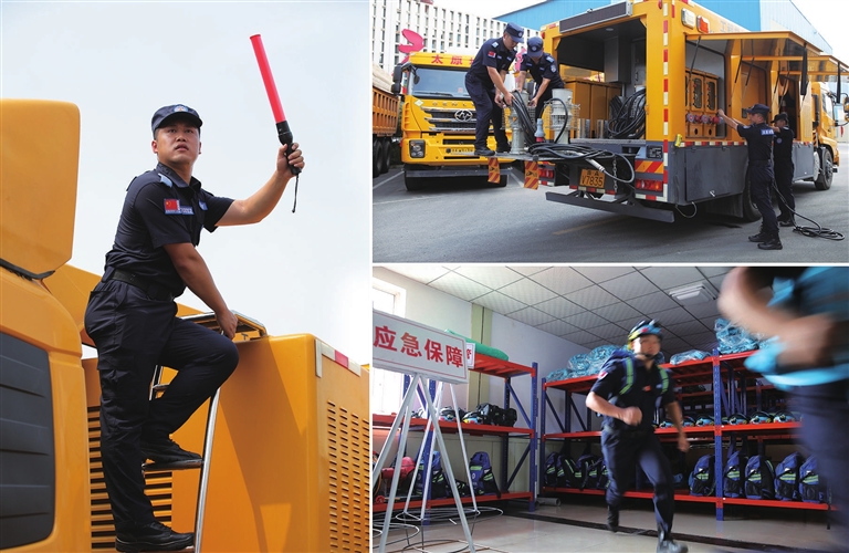 8月9日,市市政公共设施建设管理中心举行防汛应急演练。应急保障队员通过徒步负重机动、窨井救援等科目的比拼,提高防汛抢险实战水平和应急反应能力,保障我市安全度汛。王韵菲 白 亮 摄