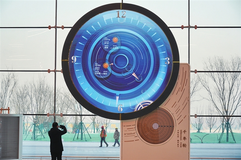 井冈山的翠竹郁郁葱葱,深圳的前海石屹然矗立,雄安高铁站内的“千年轮”转动不停……