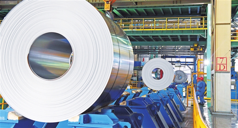 8月14日,中国宝武太钢集团不锈冷轧厂正在生产大型公共建筑用低碳不锈钢产品。太钢在国内首次研制出大型公共建筑用高耐蚀性、绿色环保型金属屋面的不锈钢和严苛工业环境下工业厂房使用的T系列不锈钢等行业领先产品,加快了建筑行业绿色化、低碳化发展。王旭宏 摄