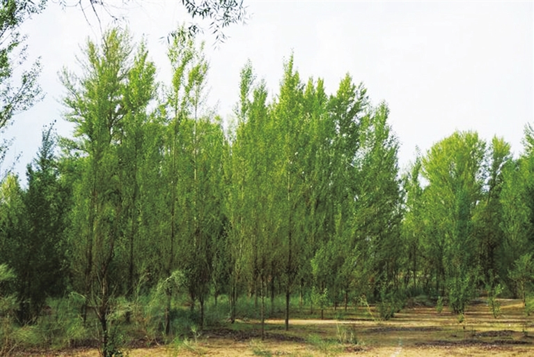 走进国营新华林场,这里种满了杨树、柳树、梭梭以及杨柴等植物。“这些植物可都是林场防沙治沙的‘绿色卫士’,也是几代林场人的心血。”国营新华林场场长杜文化说。