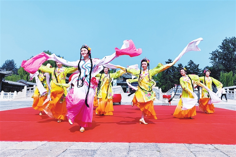 “七月初二,晋祠赶会。”晋祠古庙会是当地一项盛大的民俗活动。自明代已经形成规模,数百年长盛不衰。它是晋祠一带为祭祀圣母诞辰而举行的盛典,古称“赛神会”,后逐渐演变成晋祠传统庙会。2008年,晋祠庙会列入国家级非物质文化遗产。