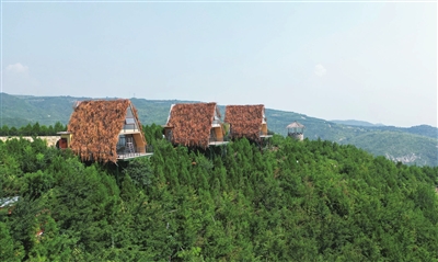 8月21日,玉泉山森林公园新建的景观民宿项目,通过独特的设计,为游客营造出诗意田园的意境。邓寅明 摄